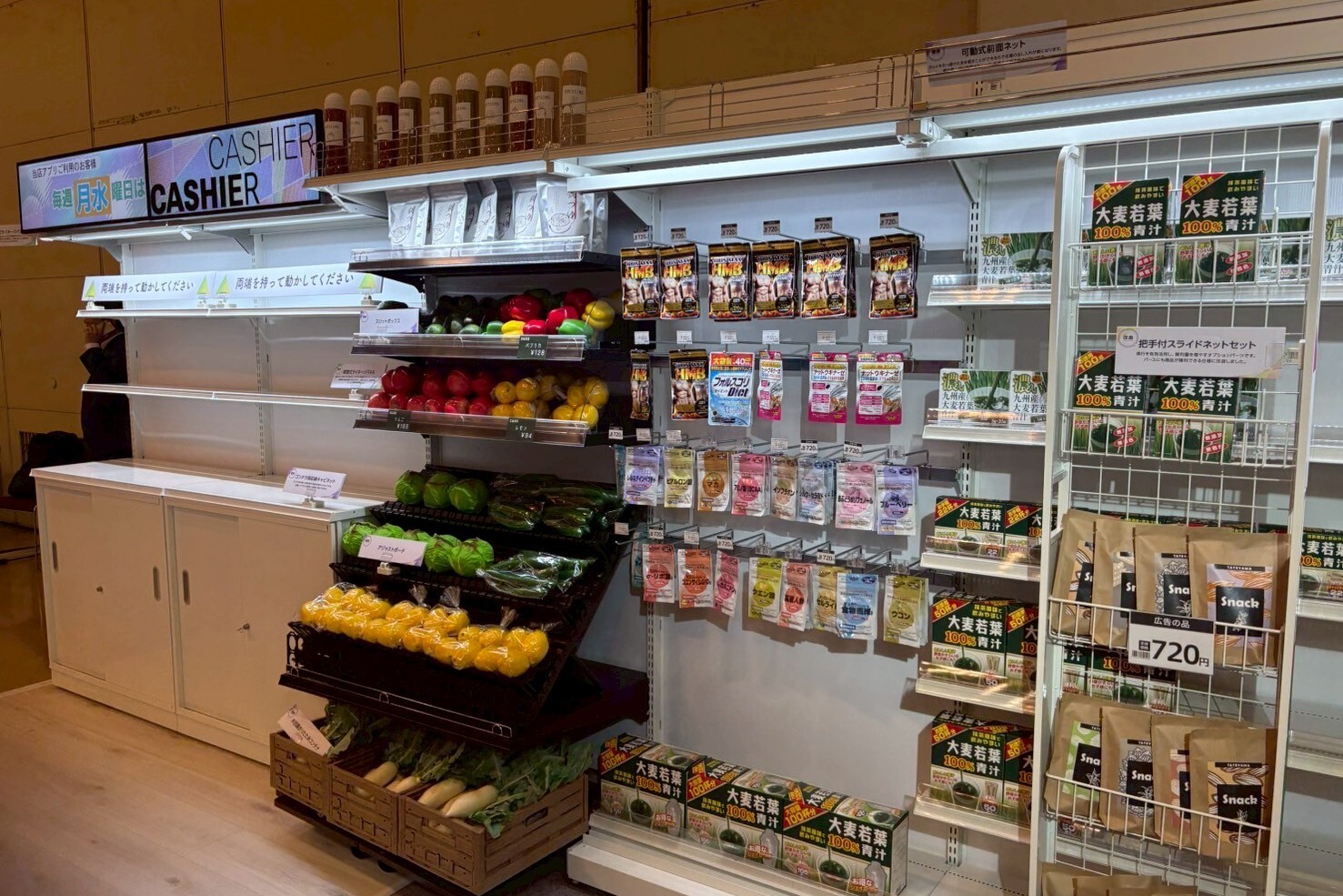 健康食品ブースでは濃い九州産大麦若葉や大麦若葉100%青汁、